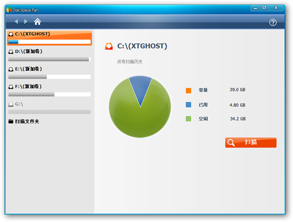 Disk Space Fan可以帮助你清理磁盘空间,迅速找到和删除大、无用的文件。