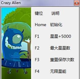 疯狂的外星人修改器是专为《疯狂的外星人》游戏玩家所提供的五项游戏修改工具。该工具可为玩家免费提供星星+5000、最大星星数、重置保存次数、无限新能、子弹时间等五项修改功能,带给玩家强大的辅助。