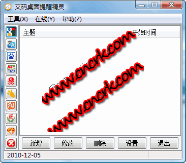 艾码桌面提醒精灵是一款备忘提醒软件,界面简洁友好,占用内存少;提醒功能具备弹窗和声音提示;此外软件还提供定时视力保护功能并能设定mp3播放软件还定时关机功能和万年历查询