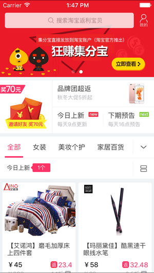 最省钱---精选全网最优惠宝贝,最高返利55%,该省的一分也不能少!最简单---常去的商城一触即达,搜索宝贝更便捷,查看返利个呢过简单!