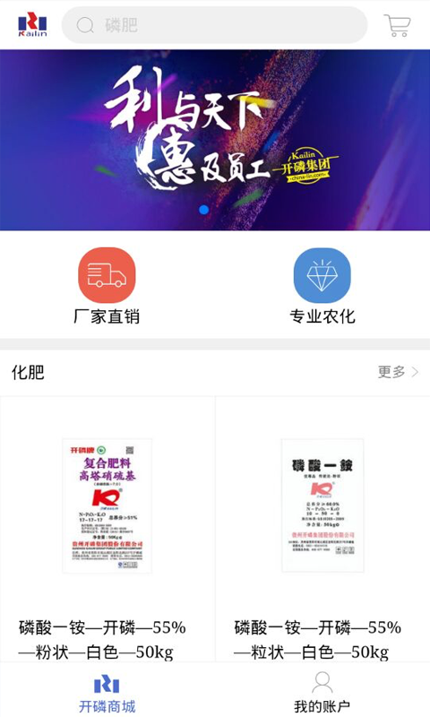 开磷通app v1.2.5 安卓版 开磷通app是由开磷集团推出的一款农业电商购物平台,该软件主要销售化肥、矿产品、化工产品等农业相关商品,而且资金紧张的用户也可以通过融资购肥的方式购买。