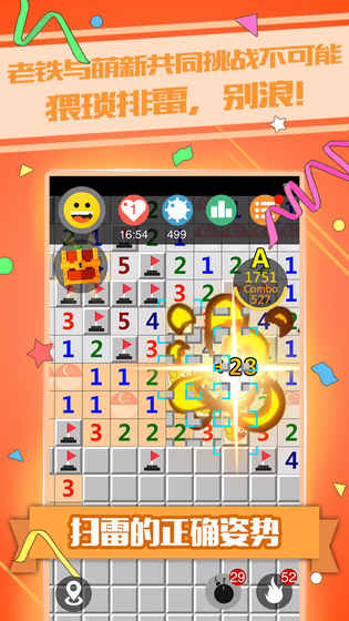 《天天爱扫雷》是一款真正的千人同时在线.io类扫雷游戏,你可以在大地图中遇到各种各样风骚的扫雷玩家,大家一起协力扫雷。当地图上的千万颗雷都被玩家们排除,地图密码将被揭开,玩家将一同进入全新阶段,不断挑战世界最多扫雷任务的新记录!
