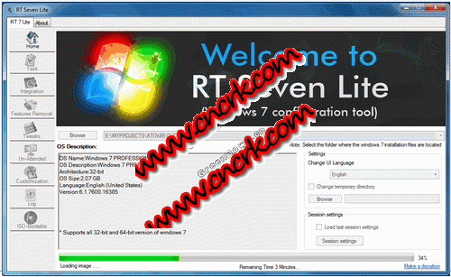 利用rt se7en lite可以自定义系统镜像,给臃肿的windows7减肥,删除自己不想要的程序和功能,对系统服务优化,集成补丁驱动等功能,制作无人值守安装。