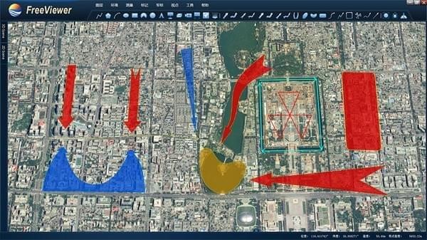 FreeEarth v2.2.0增强版本此版本增添了态势标绘的强大功能,包含了多种类型的箭头、线条以及平面,功能强大,易用灵活