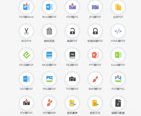 1、将PDF文件转换成word、JPG、PNG、TIFF、BMP等格式的文件;2、把WORD、JPG、HTML、EPUB、MOBI、FB2、PNG、TIFF、BMP、PPT、excel、ODT等格式的文件转换成PDF文件;
