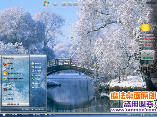 魔法桌面一夜飞雪电脑桌面主题,使用一夜大雪过后的西湖断桥做为壁纸。有人称雪中西湖乃西湖观景中的极品。“晴湖不如雨湖,雨湖不如夜湖,夜湖不如月湖,而月湖则莫如雪湖”。想象一下,湖上大雪纷飞,湖水此时已经凝成深铅色的静波,湖面雾气迷漫,一只孤雁掠过湖水,远山在空蒙的大雪中时隐时现,几叶小舟飘泊湖上,湖岸玉树银装,沿湖翠华早已被白雪覆盖,仿佛置身于一幅意境深远的中国泼墨山水画之中,何其赏心悦目