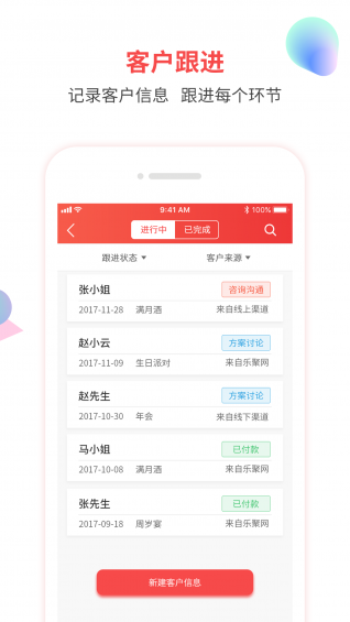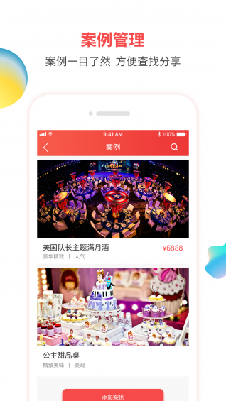 属于派对策划公司的app来啦!能帮助派对商家便捷高效管理跟进客户,执行活动,管理案例。还可以在乐聚网上线拿订单。更多功能持续开发中~【功能介绍】
