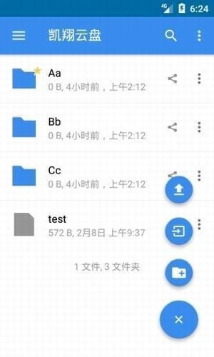 凯翔云盘app是用于搭建自有云盘服务器所配套的android客户端,可用于自有云盘文件上传、下载、查看、编辑等功能。并支持多账号登录。凯翔云盘app作为一个文件同步与分享的产品,可广泛应用于各领域企业内部以及个人用户。实现跨平台跨设备文件同步、共享、版本控制、团队协作等功能。