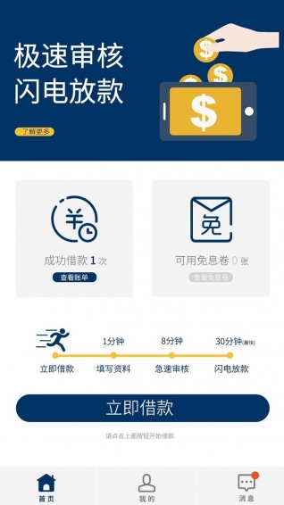3、【闪电放款】非同一般的秒级放款体验,眨眼间闪电到账。