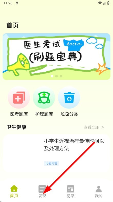 1. 开启医指通,轻点底部导航栏中的发现选项。