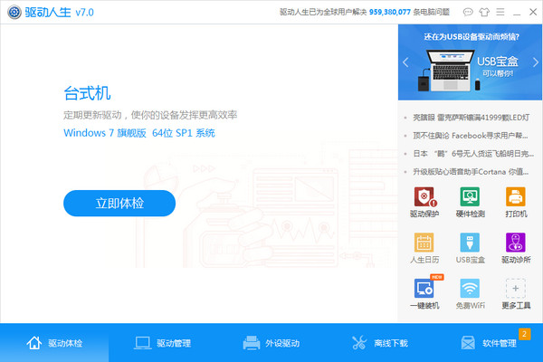 1、打开驱动人生,软件会自动为你扫描电脑里各硬件设备的驱动使用情况。