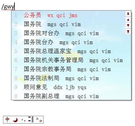 二分结构码出现重码时,输入引导符“/”+数字“0~9”可以删除相应的重码词。