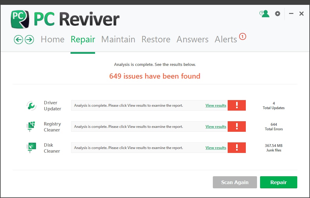 2.打电脑齐磊主屏幕上的修复瓷砖(或标签),并确保所有的扫描仪的检查,使他们会分析你的电脑的问题。然后点击扫描按钮,开始扫描你的计算机的不同区域。