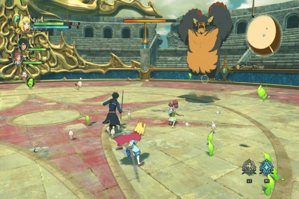 在大地图的探索会以俯视角度呈现,遭遇战的时候会切换为第三人称。Level-5的开发人员表示,战斗和自由移动的切换时间会比前作大幅减少。