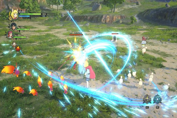 战斗战斗采用即时制,遇敌机制为可见式遇敌。战斗中能切换操控不同的角色。Tani擅长使用攻击范围宽广的武器,Roland适合近身肉搏,Evan的能力最平衡。他们都有各自的特殊攻击。