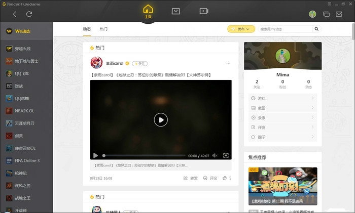 1、游戏专区:随时切换游戏专区,用wegame查看不同游戏的攻略资讯、游戏数据,商店等等。(截止小编体验的版本)2、全新资讯:游戏时刻、搞怪图集、高玩攻略、官方首发活动、赛事直播、玩家视频,轻松掌握全新的游戏资讯。