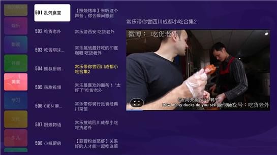 从首页可以看出,如果你事先知道自己想要看什么样的内容,可以到对应的分类当中去找,比如“体育”“影视”“娱乐”等等,包含多个类目;比如说我们点击美食这一栏目看看,在右边就会出现一排与之相关的美食内容;
