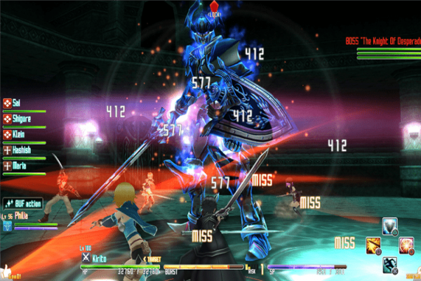 所谓的“SAOHF”战斗,就是没有暂停,需要实时与同伴交流的战斗。所以,与同伴的连携是很重要的。虽然这样有些繁琐,但是通过实时判断,将各个方面考虑周全之后指定出的战术能够带给人极大满足感。并且,在增强了动作性的本作中,需要玩家更快的反应以及及时的指令。总而言之是更加考验人了。