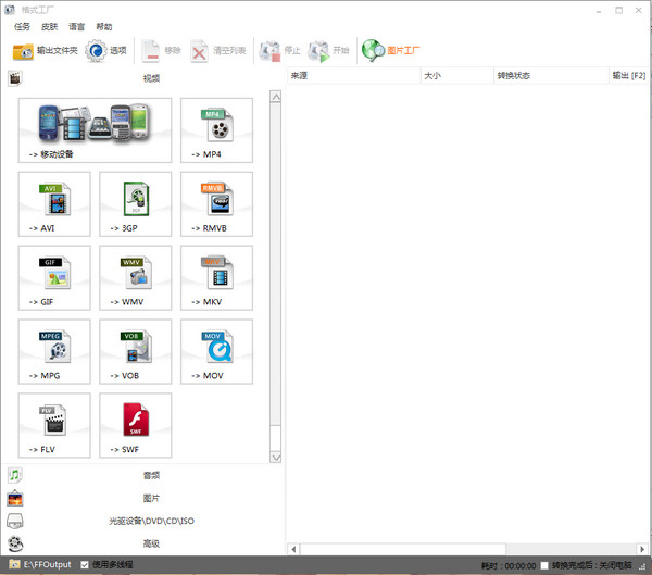 转换界面可以点击左上角的“输出文件夹“进入输出文件夹。点击”清空列表“清空你正在转换的任务。