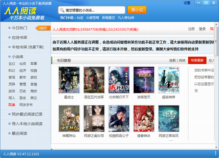 人人小说下载阅读器 V2.47 Build 12.1101更新说明: