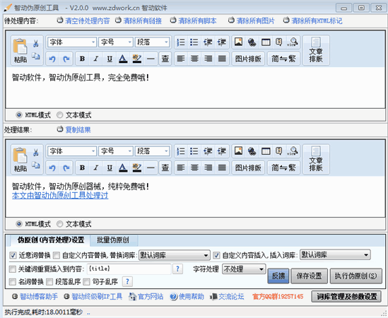 智动伪原创工具是一款随心所欲的伪原创工具,所有功能您都可以自己定义设置: