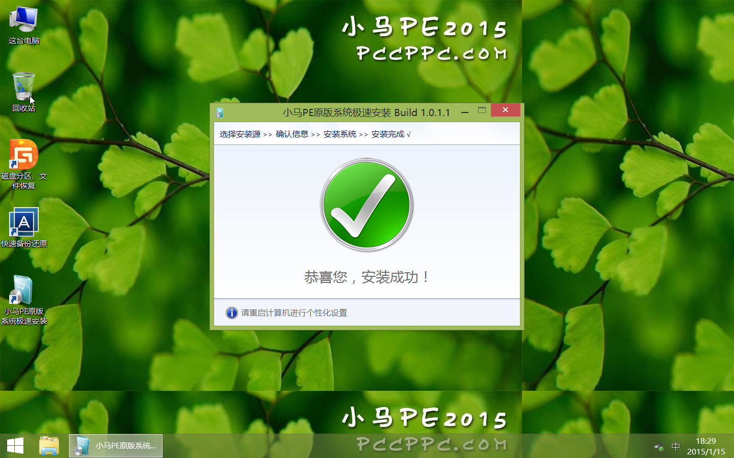 小马PE是PCCPPC.COM旗下自2008年发布并持续维护的一款U盘启动盘和PE系统维护工具,目前已经公开发布的小马PE2010,小马PE2011,小马PE2012,小马PE2013,小马PE2014等,绿色无捆绑无插件,使用方便快捷,在网络上广受众多网友的好评。此次小马PE2015给大家带来了基于Win8.1更新64位制作的U盘维护系统,深层次全方位定制了PE的功能,完全符合普通电脑用户和专业维护人员的使用习惯,让装机不再成为难题,让系统远离捆绑和插件。【软件特点】