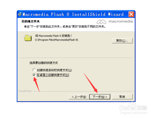 6、将”在桌面上创建快捷方式“前面的方框勾上,再点“下一步”。