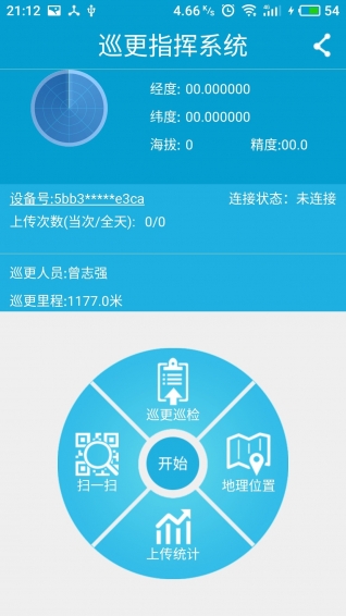 3,巡更管理:开启巡更,实时定位,展示当前位置信息,当天的巡更路线轨迹可在地图上查看
