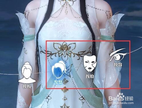 5、然后再返回捏脸主页面,根据我们自己的喜好,选择需要设置的发型、捏脸、妆容选项进入具体的设置页面,都设置完成后保存返回这个页面就可以了。
