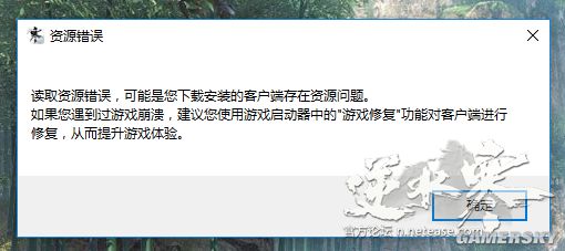 如果您在体验逆水寒的时候,有客户端卡顿、崩溃的情况,或者遇到如下报错提示,请检查客户端资源完整度。
