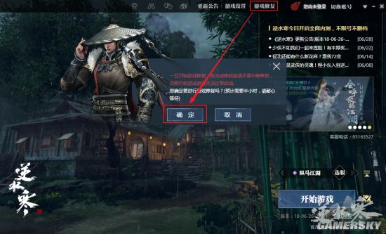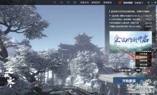 您可以在逆水寒启动器界面如下位置找到客户端资源修复功能。修复过程中请耐心等待,不要中断或关闭修复进程。