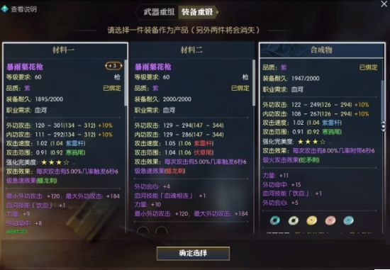 如果装备1、2都是武器,那么它们只能合成武器。