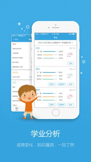 1. 学业剖析:对学生各学科成绩进行统计分析,提供题目解析,并支持查看完整答题卡。
