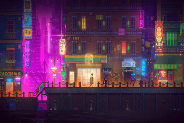 复古的像素风格,配合精美的特效及灯光表现,将给你难忘的视觉体验。搭配各种精心打磨的音乐和音效,在这迷幻和喧嚣的未来世界中,为你带来绝妙的沉浸体验。作为一款解密游戏,在故事探索中穿插着各种不同类型的谜题,它们将对玩家的分析推理能力、观察能力和耐心进行一一的考验。谜题巧妙融合在场景和故事中,让游戏的体验更加流畅。