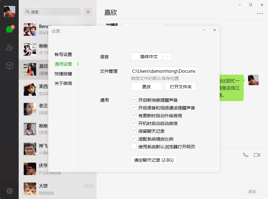 点击左下方的“设置”,点击“通用设置”,勾选“保留聊天记录”,那你的微信电脑版就会把你的聊天记录保存下来了。