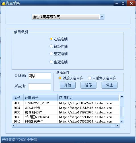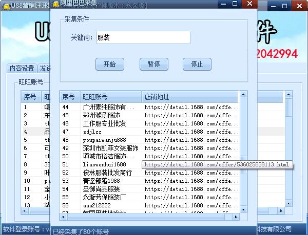 采集旺旺账号:按照地区和等级和店铺名搜索 店铺类别采集;旺旺群采集:只需要输入关键词即可采集大量的旺旺群,支持全自动加旺旺群;