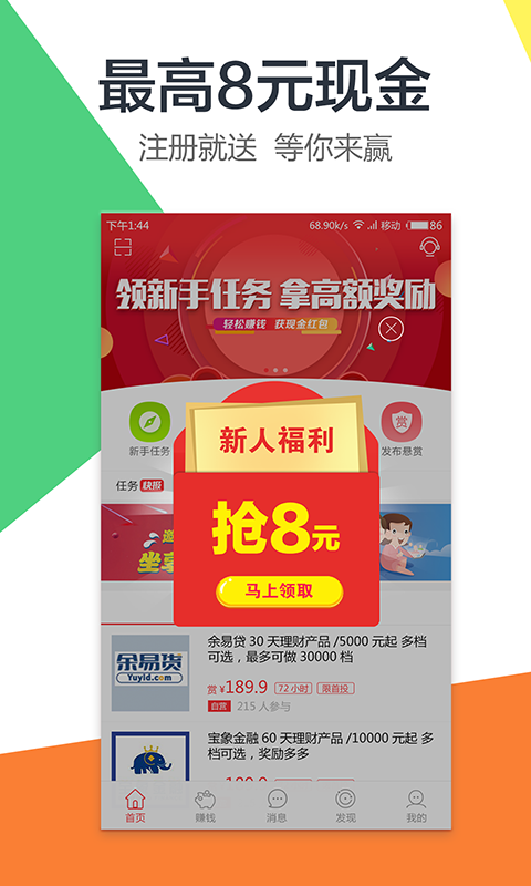 通过赚钱吧赚钱的新用户,即可获得新手现金红包。