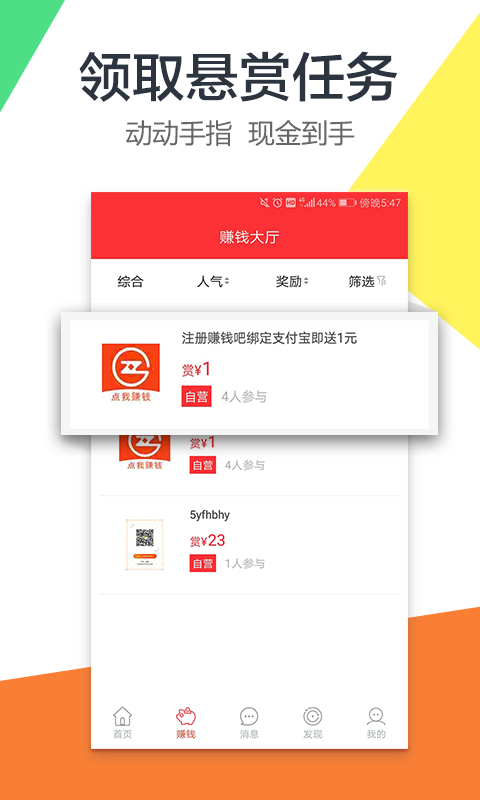 赚钱吧是一款轻松做兼职,网赚任务平台。空闲时间,打开赚钱吧。轻松一点完成悬赏,攒大钱,创造财富新人生。