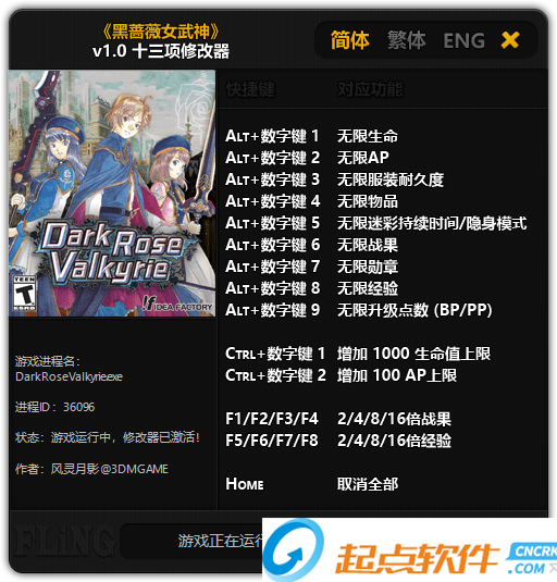 Alt+数字键 1 - 无限生命Alt+数字键 2 - 无限AP