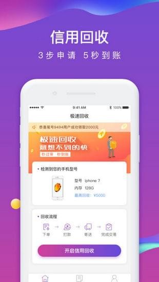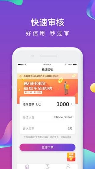 极速回收是一款移动互联网电子产品信用回收平台,用户通过信用审核以及设备在线审核后,享受先打款后寄送的服务。先拿钱,后寄货,任性玩转二手回收。更好的信用,享受更优质的生活。极速回收是一款二手手机估值最高的信用回收平台,评估用户信用情况,授予预付款额度,用户在线评估手机,享受先打款后寄送的优质信用服务。在线极速审核,信用评估拿更多。