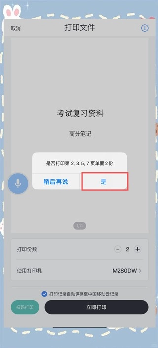 2、来到打印页面,仅需长按麦克风按钮,接着清晰说出指令:“至像同学,请打印第2页、3页、5页和7页,且打印两份。”如此,你便能轻松搞定复杂的打印任务,无需进行繁琐操作。