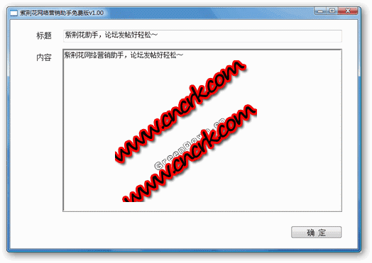 紫荆花网络营销助手 V1.00 简体中文绿色免费版 紫荆花网络营销助手软件是一款推广网站、网络营销的神兵利器。其特点在于,软件作为一个工作平台,用户可以根据自己的需要,编写相应的规则文件,做到可以自动在任意的(发帖或回复无需填写验证码)网站、论坛、博客或者sns和分类信息网站发帖,并且,这一切是完全免费的