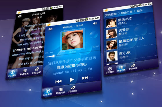 1、网络歌曲即点即播.百万曲库随身携带;2、歌曲查询一键搜索.绚丽皮肤多重体验;