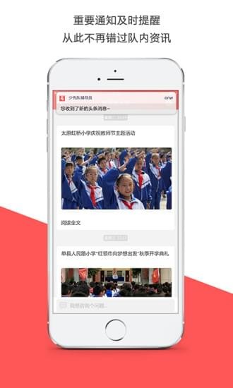 4, 消息: 互动足迹实时跟踪,与各级少先队组织、少先队辅导员之间沟通交流一键送达。