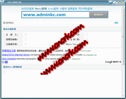 域名信息查询工具 V3.0 绿色免费版 域名信息查询工具用来查询域名是否已经被注册,以及注册域名的详细信息的数据库(如域名所有人、域名注册商、域名注册日期和过期日期等)。通过域名whois查询,可以查询域名归属者联系方式,以及注册和到期时间等,本工具直接联接域名whois服务器查询,速度极快。支持 .cn .com .net .sg .tw .hk 等 138 个 国际顶级域名