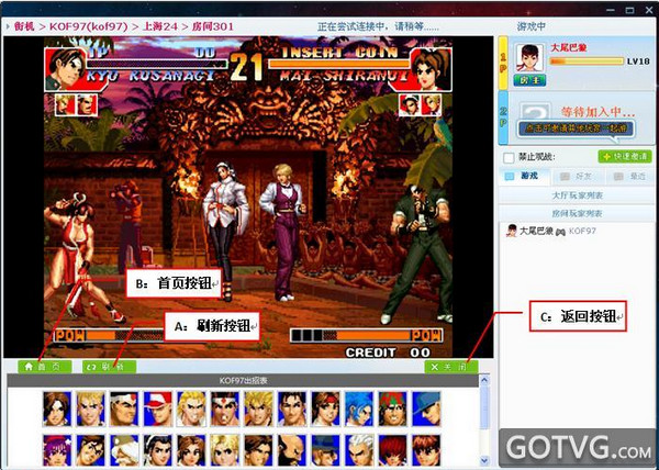 B. 当前游戏状态:显示您当前的游戏状态,状态分为:游戏中、连接中和观战中三种;