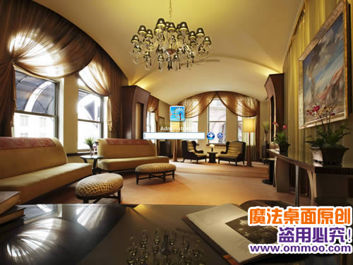魔法桌面欧式家居电脑桌面主题,选用欧式装修风格图片作为壁纸。躺椅、沙发、壁炉、吊灯无一不彰显着浪漫的欧洲风情,使得您在寒冷的冬季体验温馨的欧式情怀