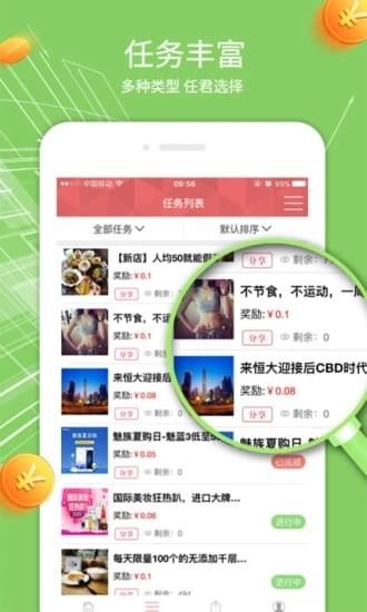 -任务类型丰富:拥有转发任务、浏览任务、注册任务、线上任务多种种任务类型,总有一款适合您;-操作0门槛:只需一部智能手机,白领、学生、宝妈通通摇身一变成为网络营销达人;