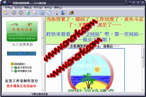双眼免费阅读器是一款永久免费的电子报刊、杂志、图书、电子书阅读器,而且这个版本中还加入了在线看电影、听音乐、听广播、下载电子书的一些功能。本软件最大的特点是能够实现在线阅读的预加载,也就是说,当你打开某一个报纸或者杂志的首页时,软件会自动加载与之相关的其他页面,这样等你阅读完本页面的内容以后就可以顺利的阅读下一页的内容,真正实现了在线流畅阅读。软件收录的所有电子报刊、电子杂志、电子图书均与实体刊物保持同步更新,有了这个工具你就再也不用花钱订阅报纸和杂志了。而且本软件推荐一下在线电影、音乐都很不错,足够满足你对艺术的追求
