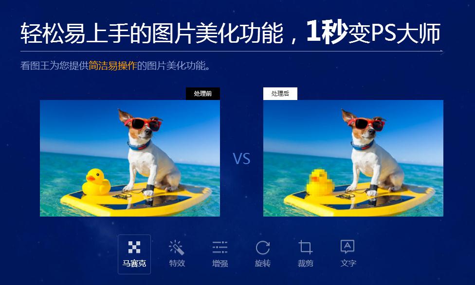 1、图片处理功能:轻松上手,简易编辑。特效调整、自由旋转、多模式裁剪、添加文字气泡。2、强劲图像引擎:打开图片速度快2倍。极致清晰,高清画质完美呈现。